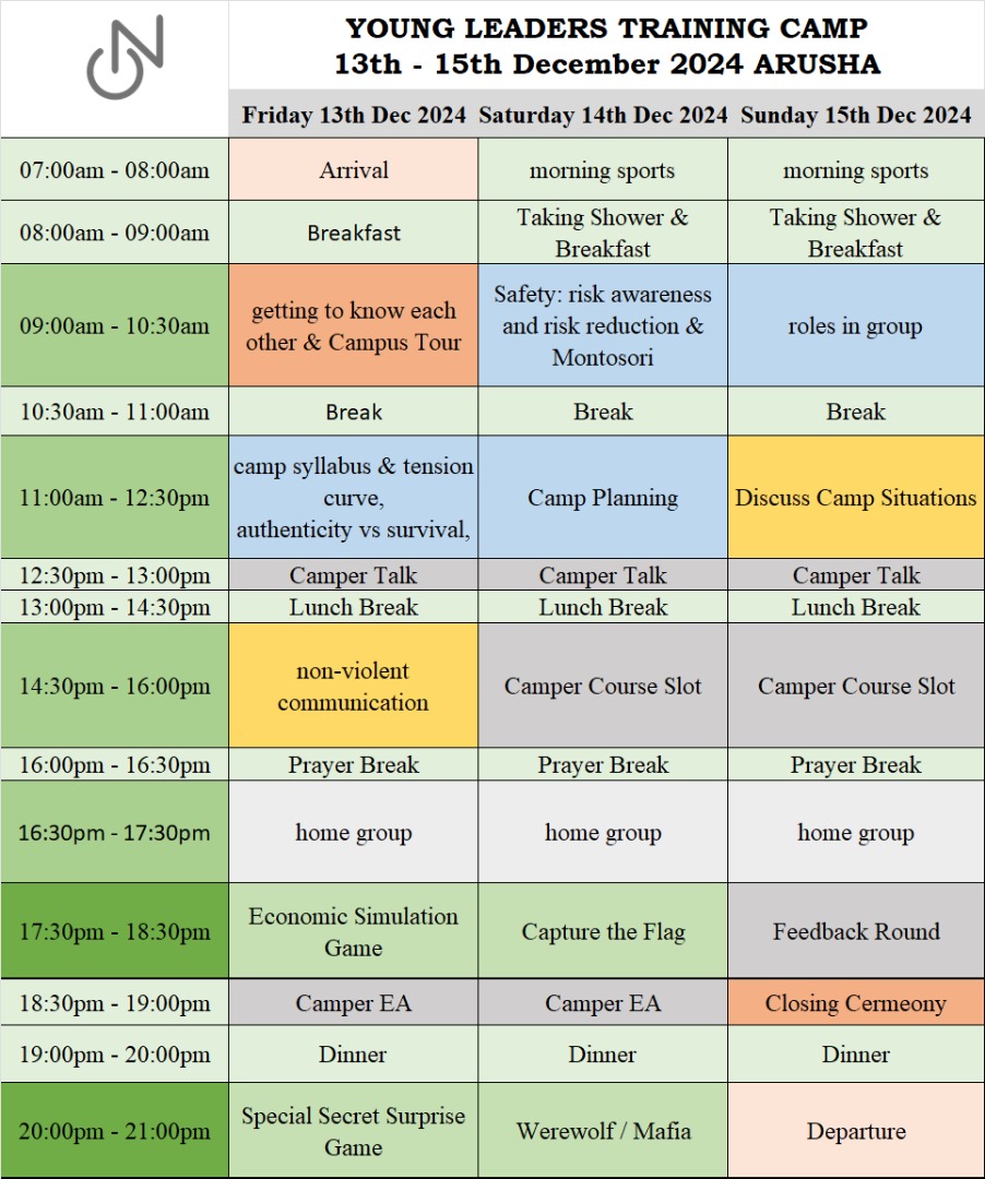 Participants who pass the application can attend the training free of charge and stay in shared rooms, with shared "local" (Tanzanian-style) toilet and shower, including 3 meals per day.
